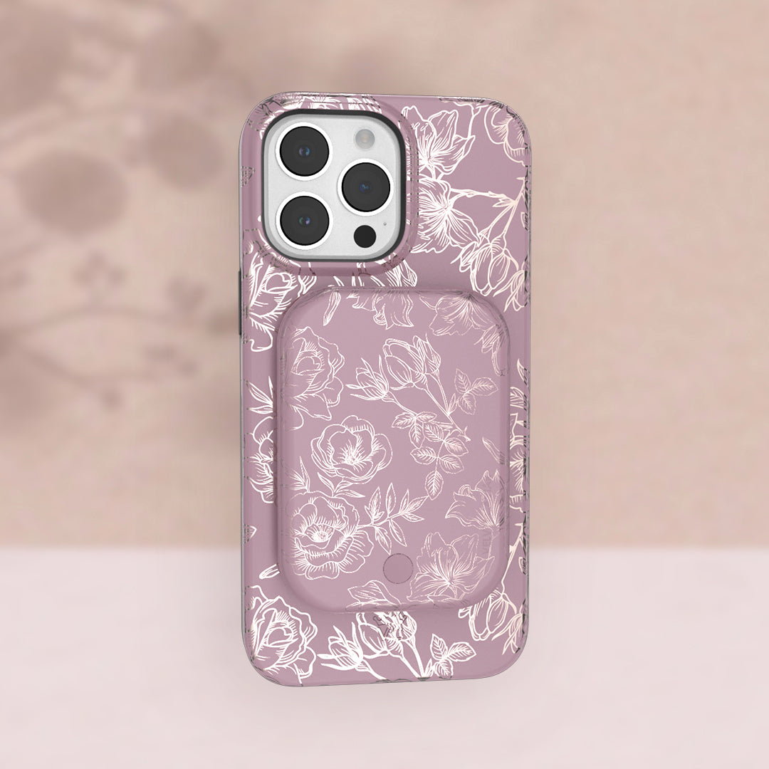 Dusty Rose Chrome Floral MagSafe Battery Power Pack