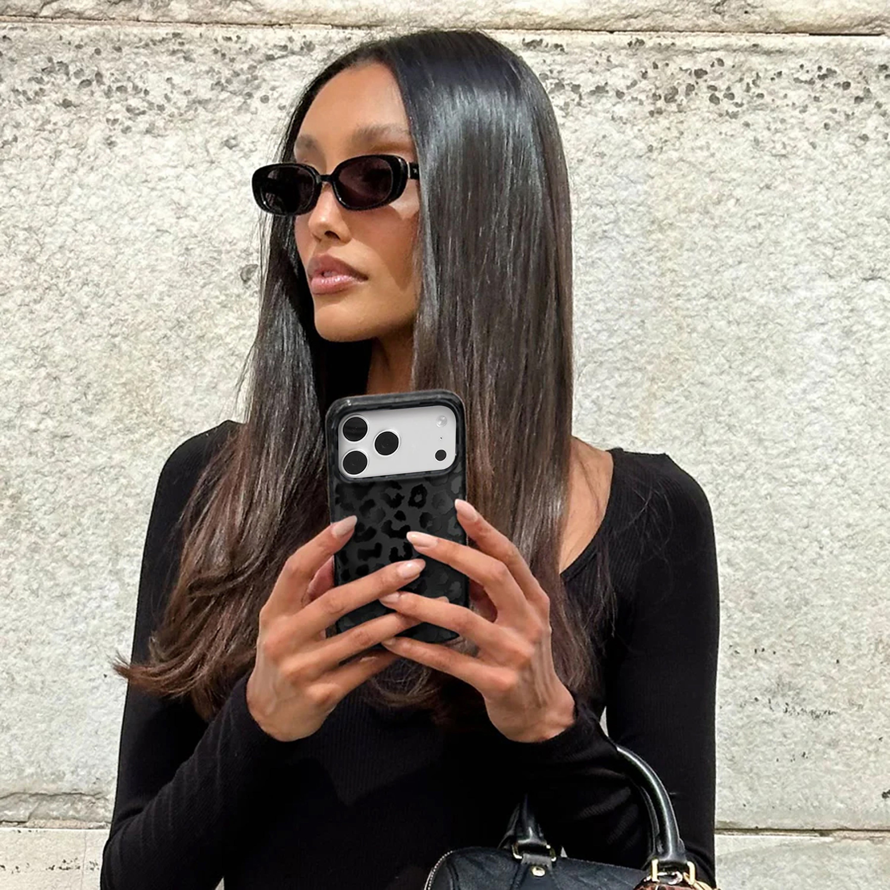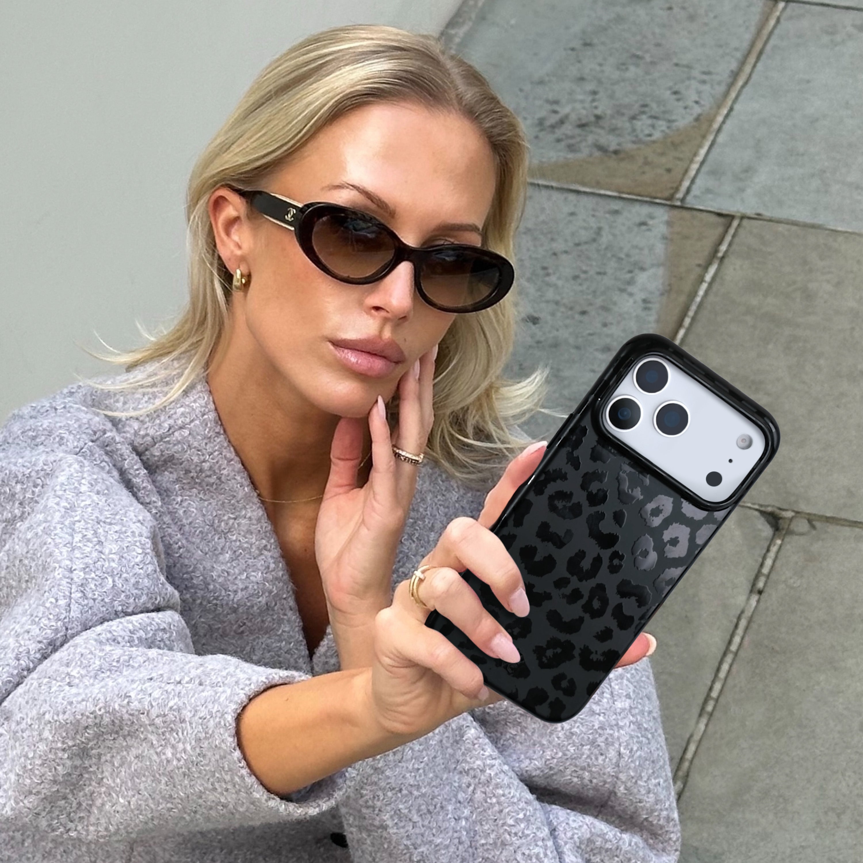 Take a walk on the wild side! This protective case features a matte black base with glossy leopard spots.