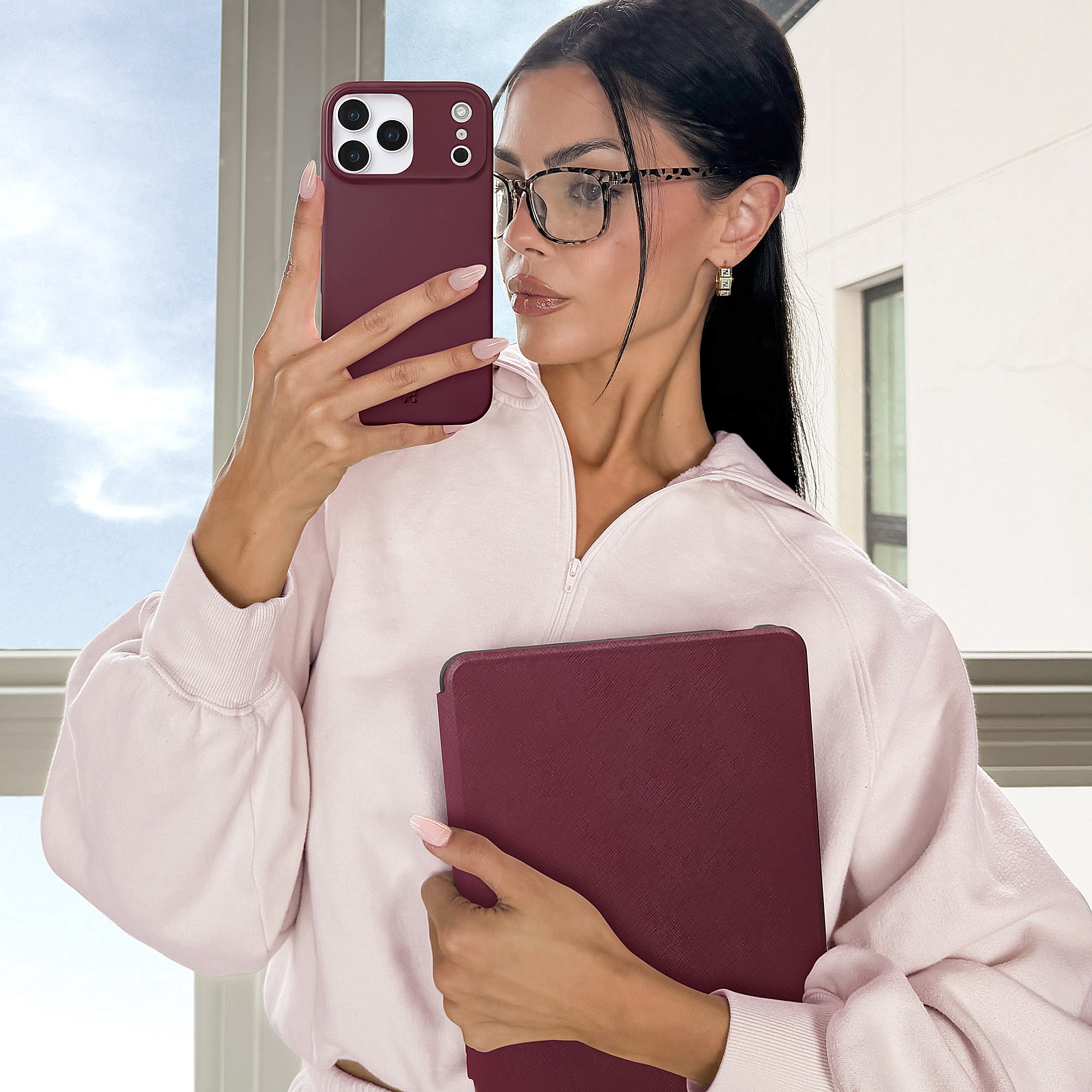 Elevate your everyday with this folio style iPad case featuring a Vegan Saffiano Leather exterior, 3 adjustable stand settings, and a charging compatible stylus holder*.