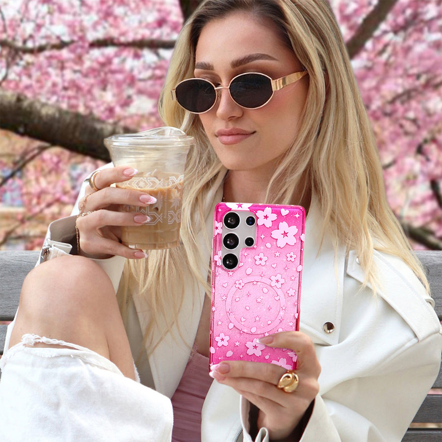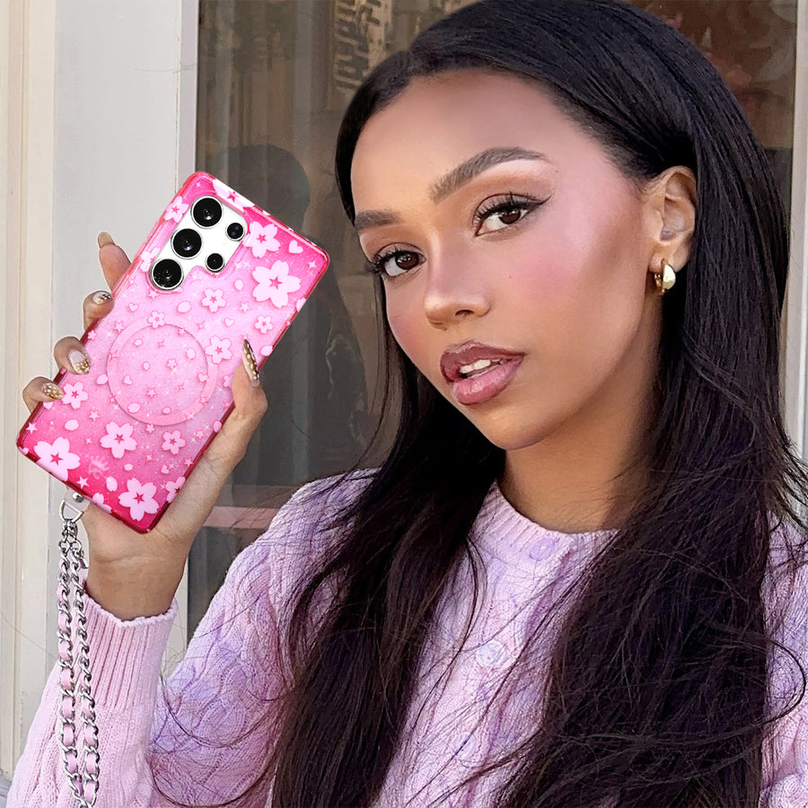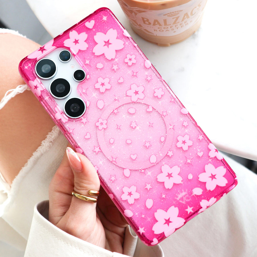 In full bloom! This Special Edition case celebrates Cherry Blossom Season with stunning pink sakura flowers scattered on a ombre clear pink base with silver stardust glitter sprinkled throughout the base and bumper.