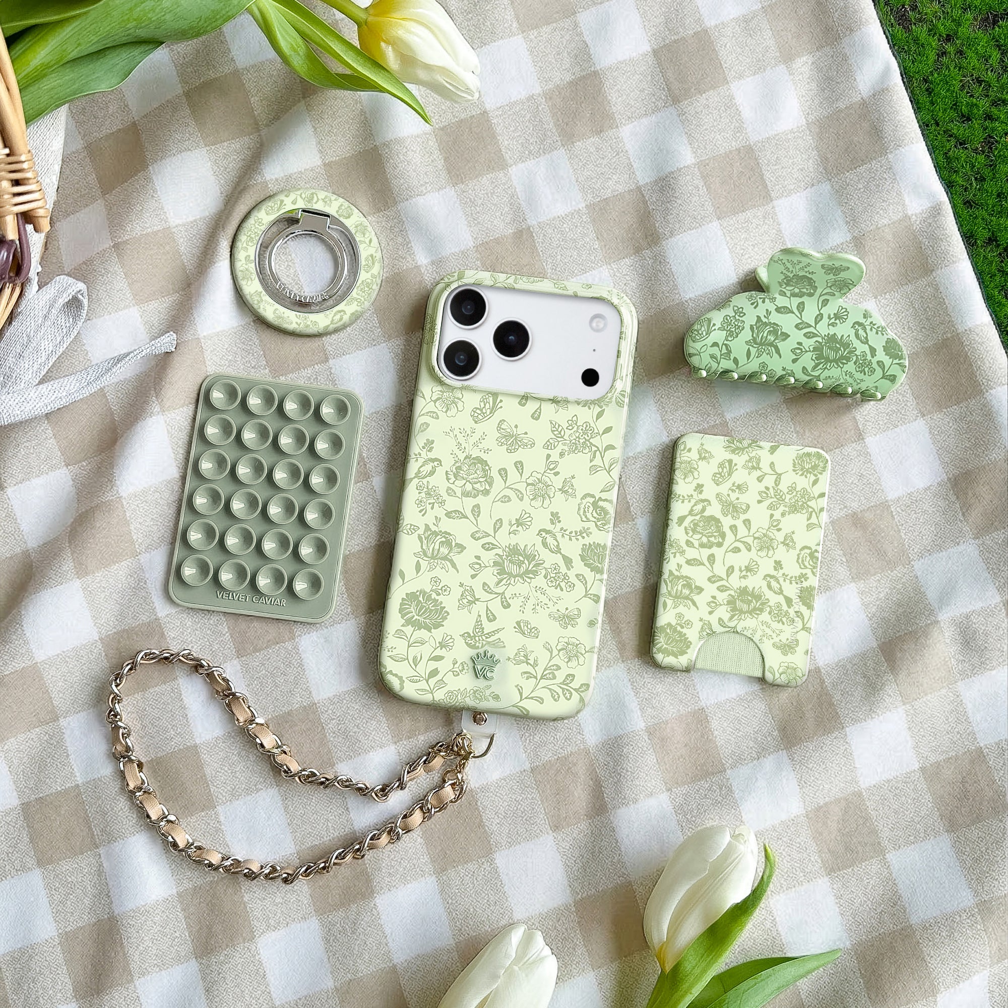 One word. FIERCE! This Limited Edition case features glossy leopard spots on a frosted lime green base. This style does not feature an interior velvet lining.