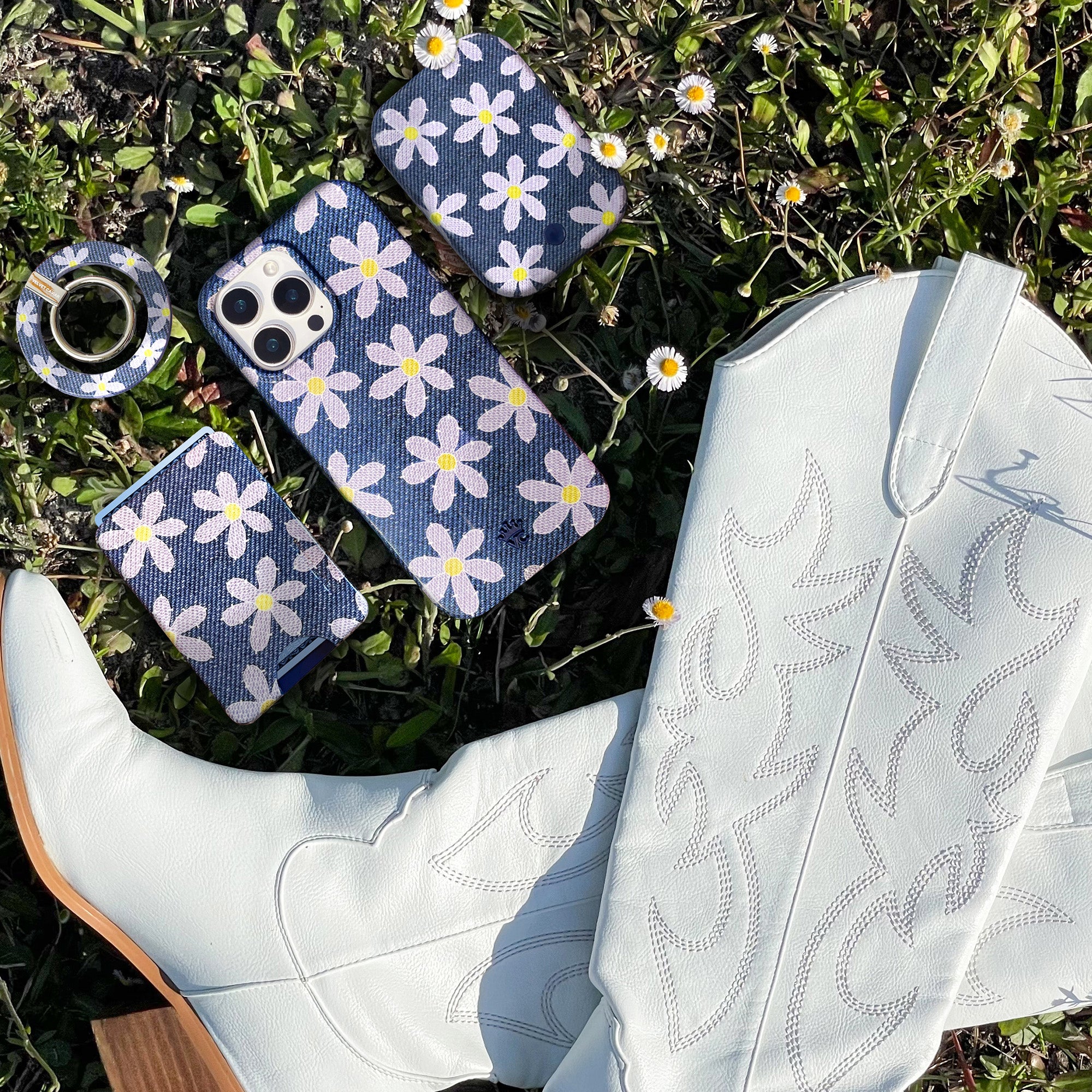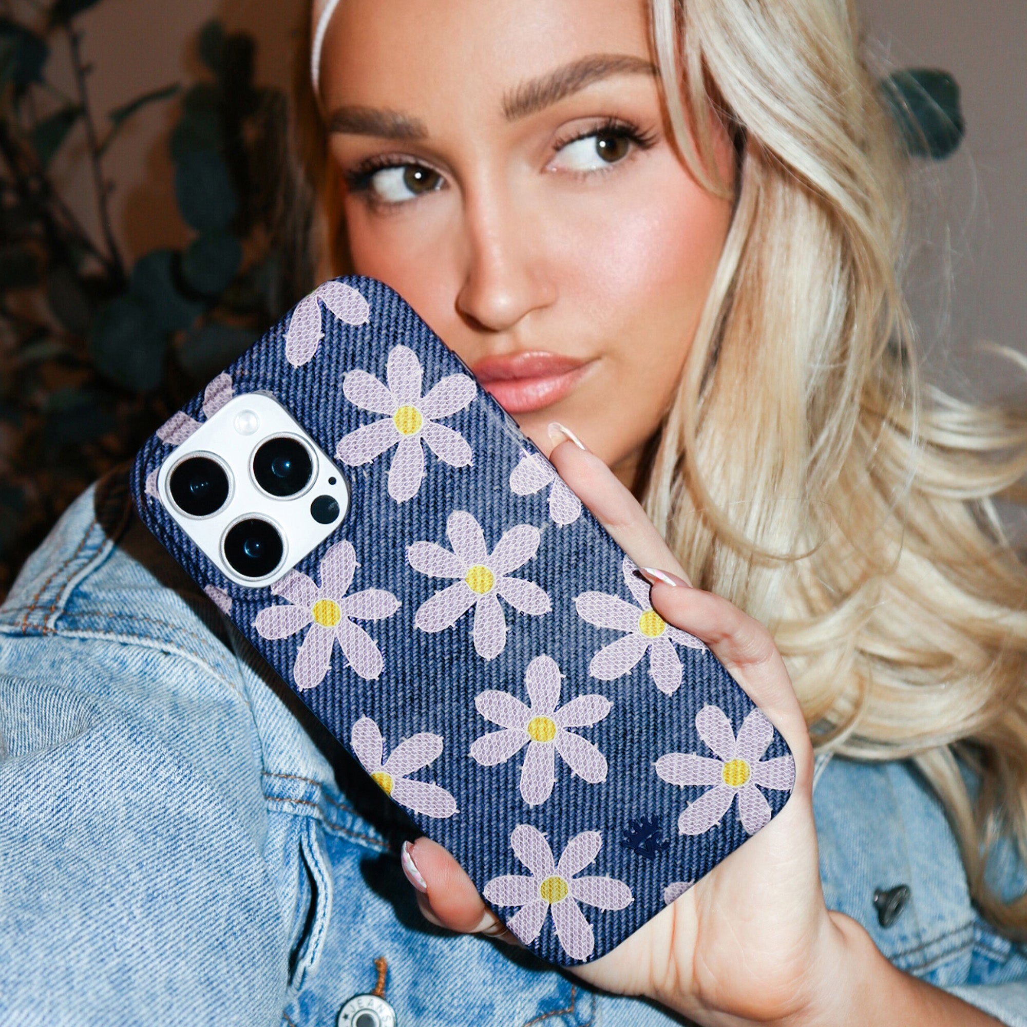 Blue Jean Baby! This Limited Edition MagSafe case captures the look of denim with a daring daisy floral pattern on a glossy base.