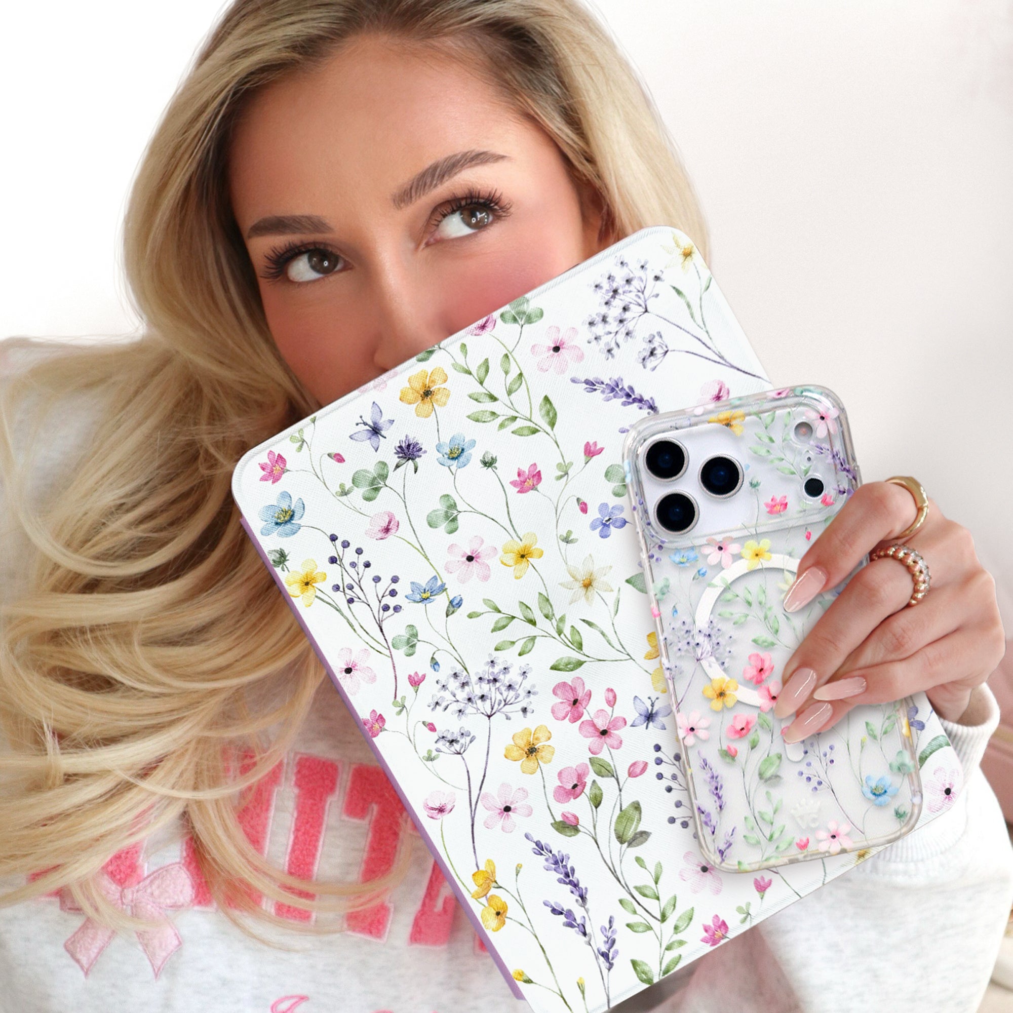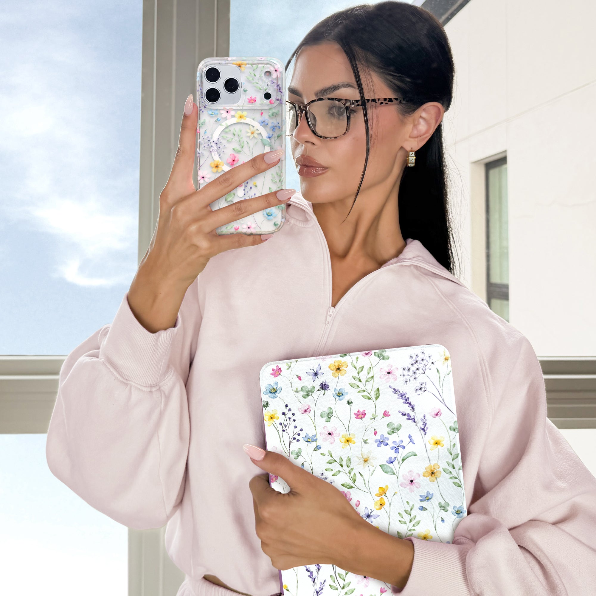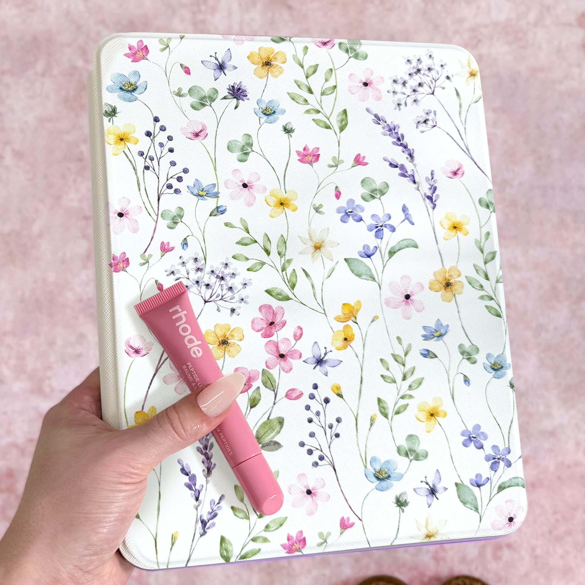 Elevate your everyday with this folio style iPad case featuring a Vegan Saffiano Leather exterior, 3 adjustable stand settings, and a charging compatible stylus holder*.