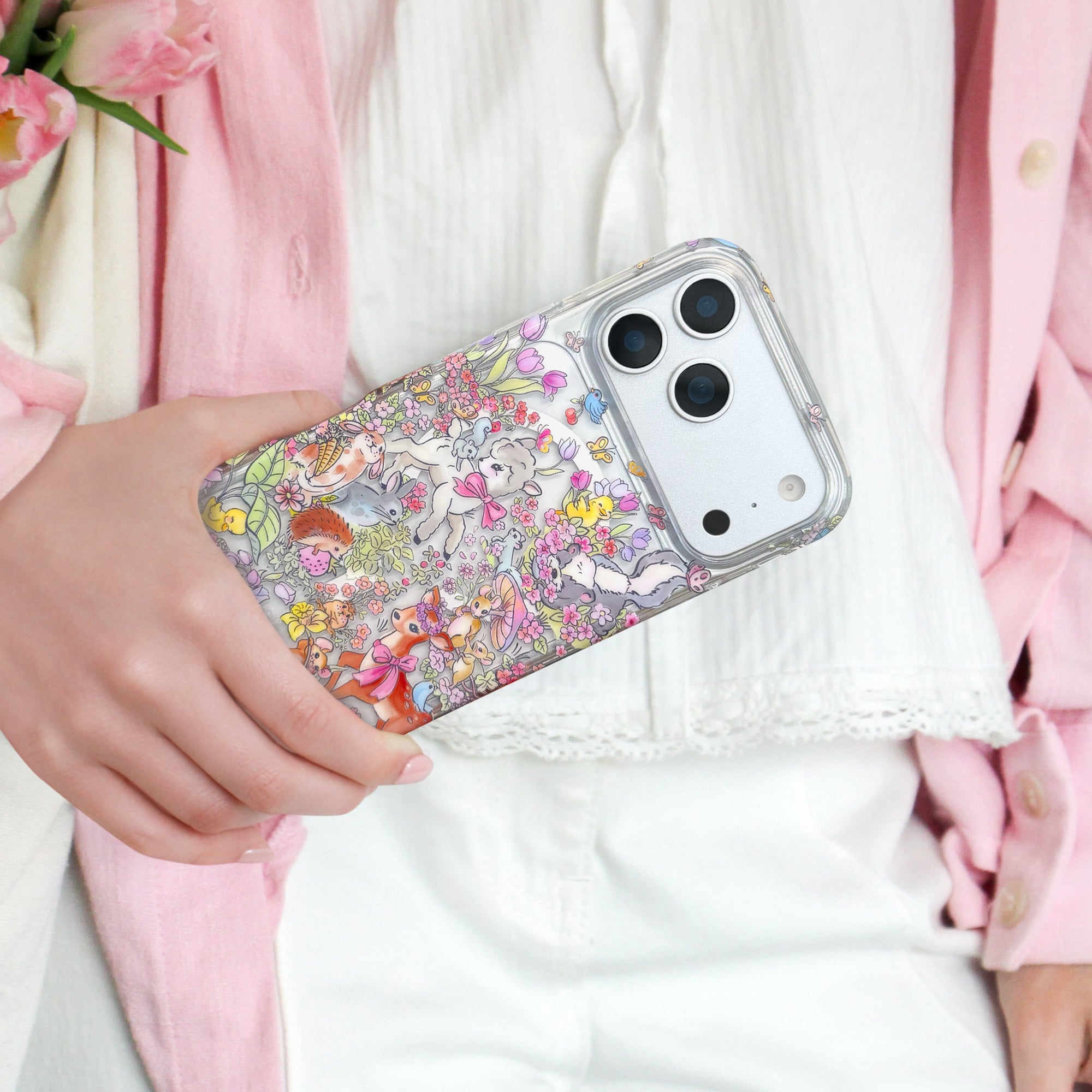 Once upon a daydream! This MagSafe phone case features an array of friendly woodland animals in a nostalgic storybook style all on a classic clear base.