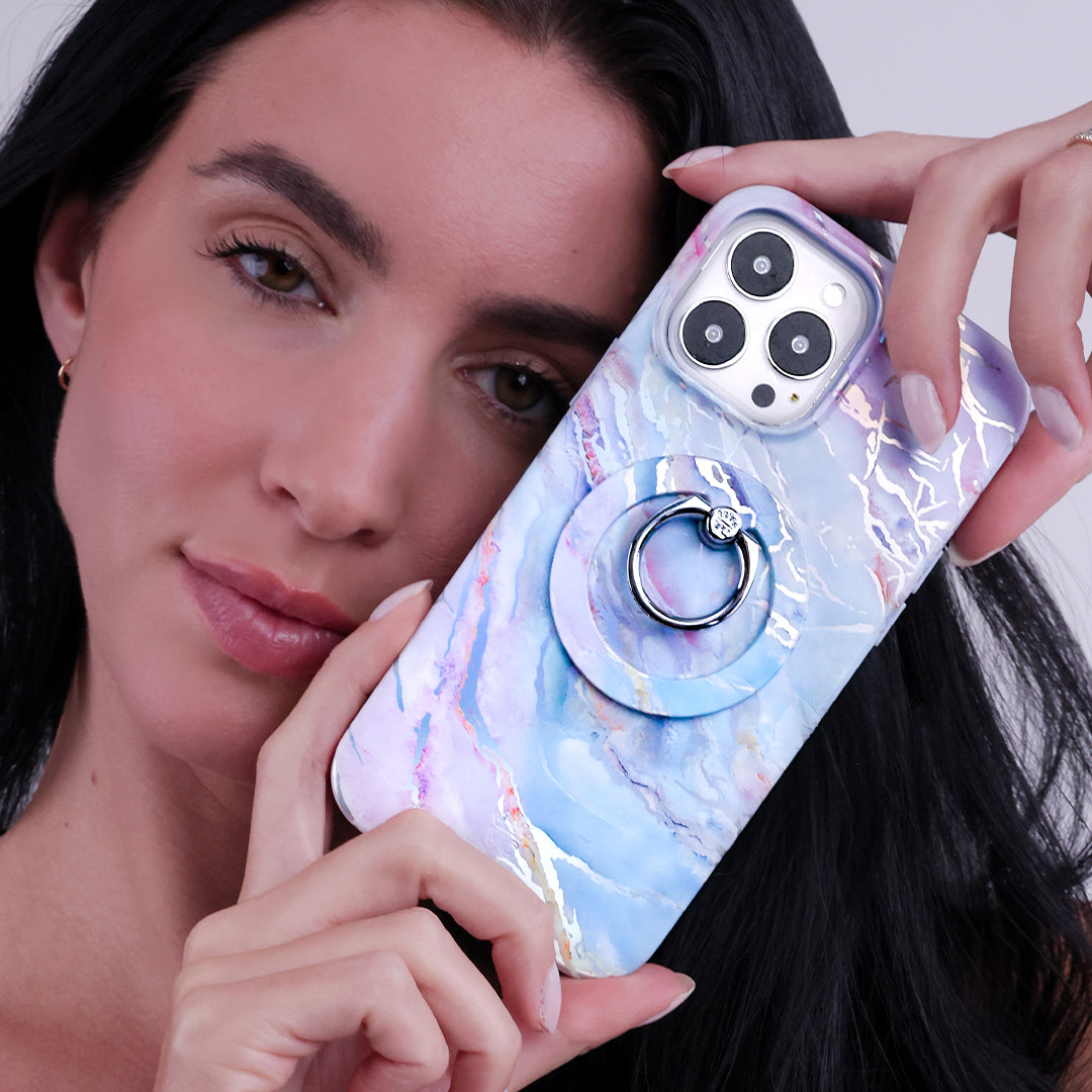 Iconic and original! This case features gorgeous pastel blue and pink colors topped with shiny holographic chrome!