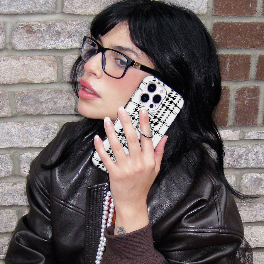 Happy Holidays! This MagSafe case features a classic black and white houndstooth print with a contrasting black bumper. This case is part of our Limited Edition Christmasand Hanukkah Collection.