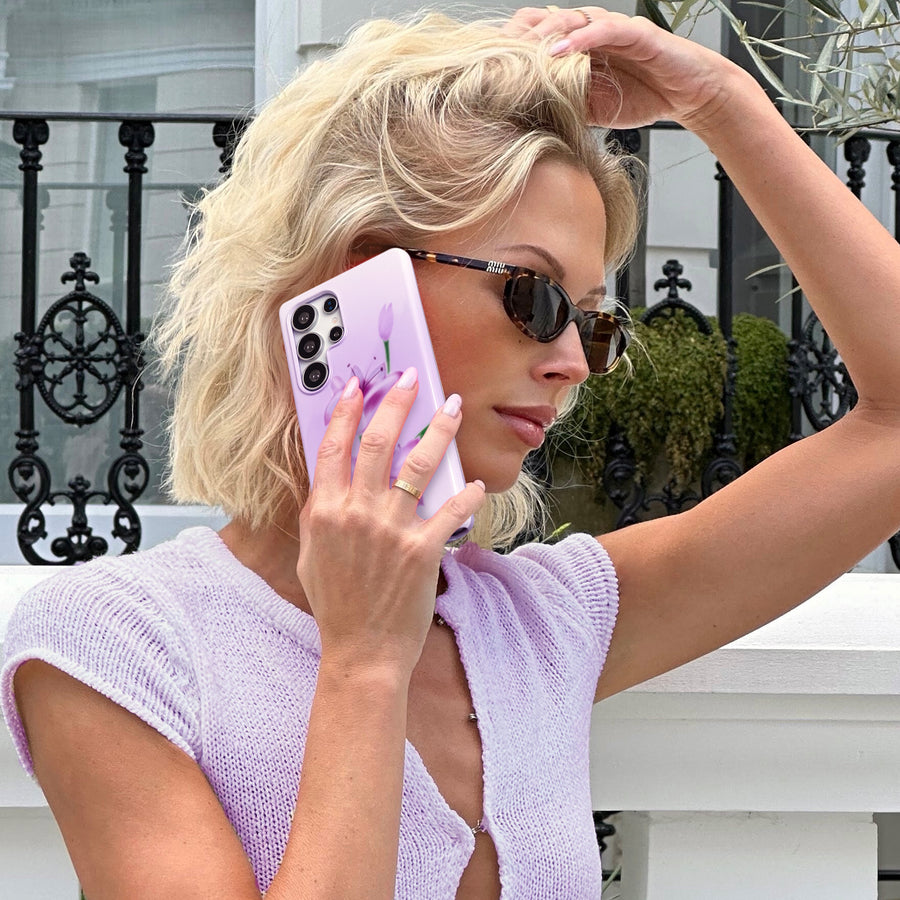 Under your spell! This protective case features a soft focus blooming lily floral on a pastel lilac base.
