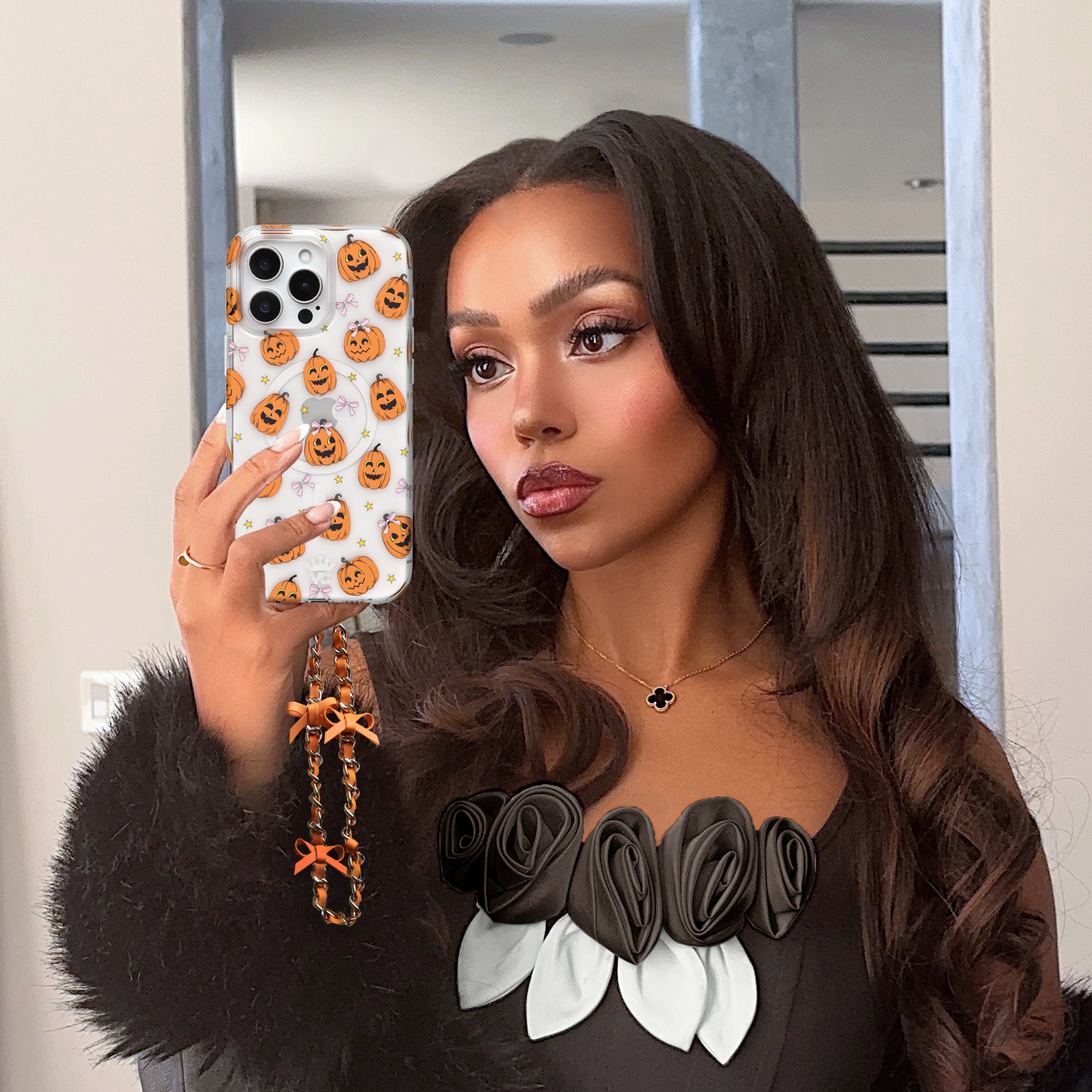 Orange Bow Leather Chain Phone Charm