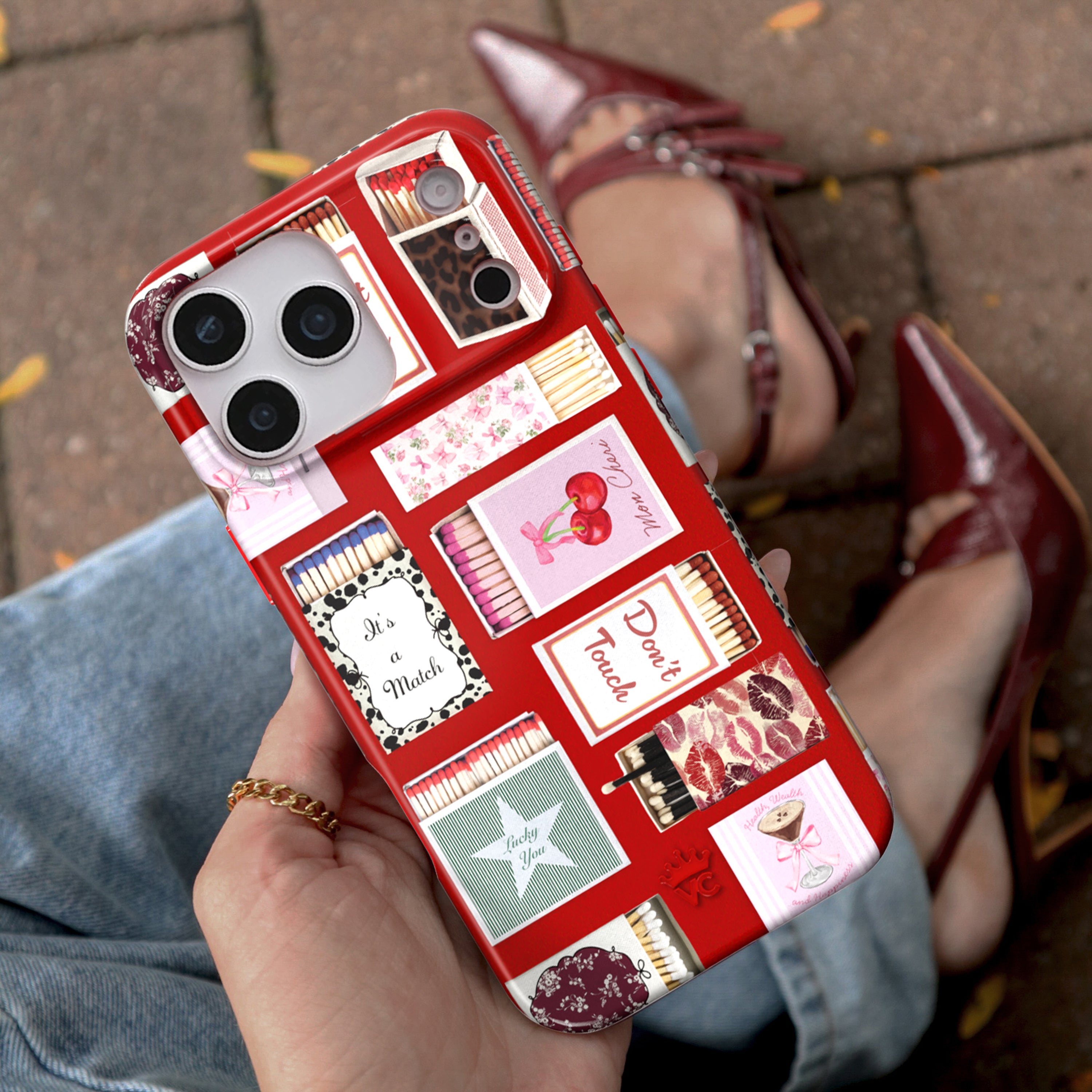 Happy Holidays! This MagSafe case features vintage-inspired match boxes on a red base. This case is part of our Limited Edition Holiday Dreams collection celebrating Christmas and Hanukkah.