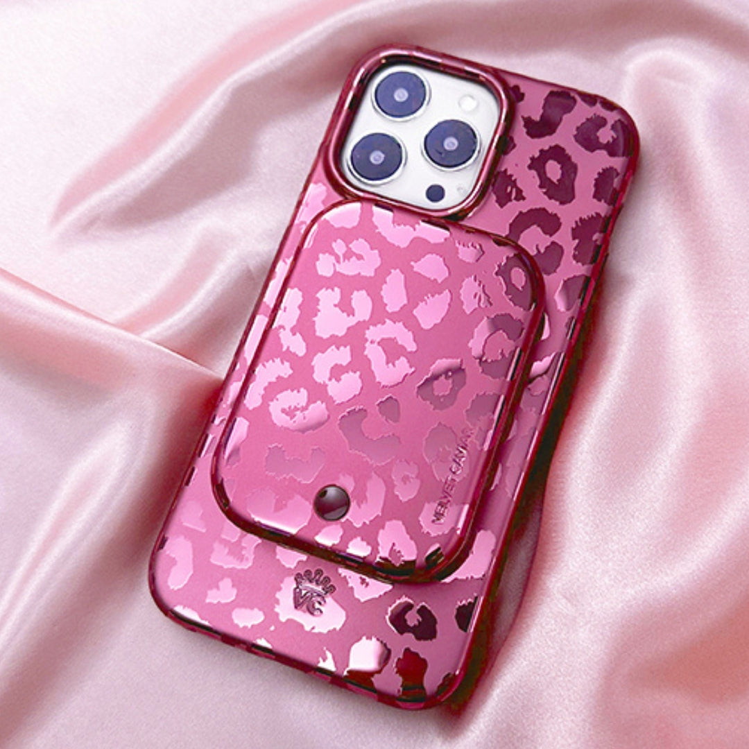 One word. FIERCE! This protective case features metallic ruby leopard spots on a monochromatic satin base.