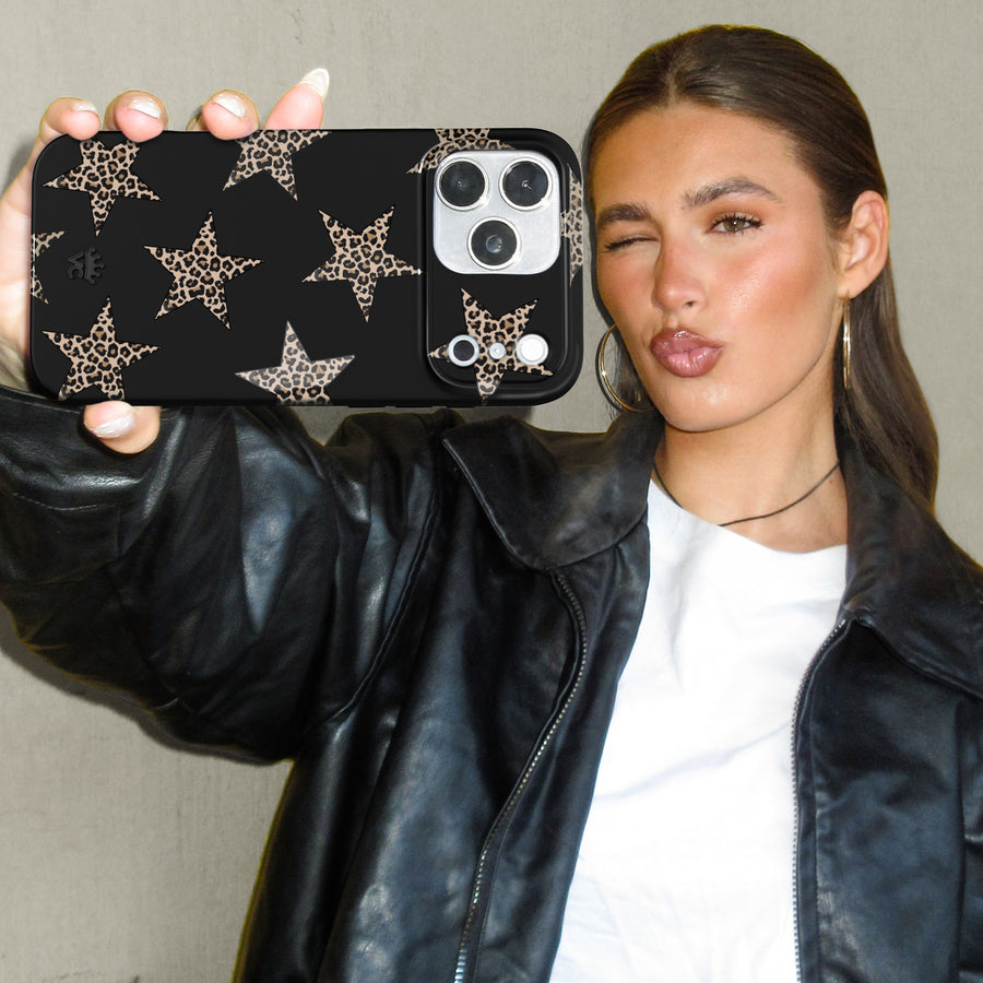 Add a little edge! This MagSafe case features leopard print stars on a matte black base.