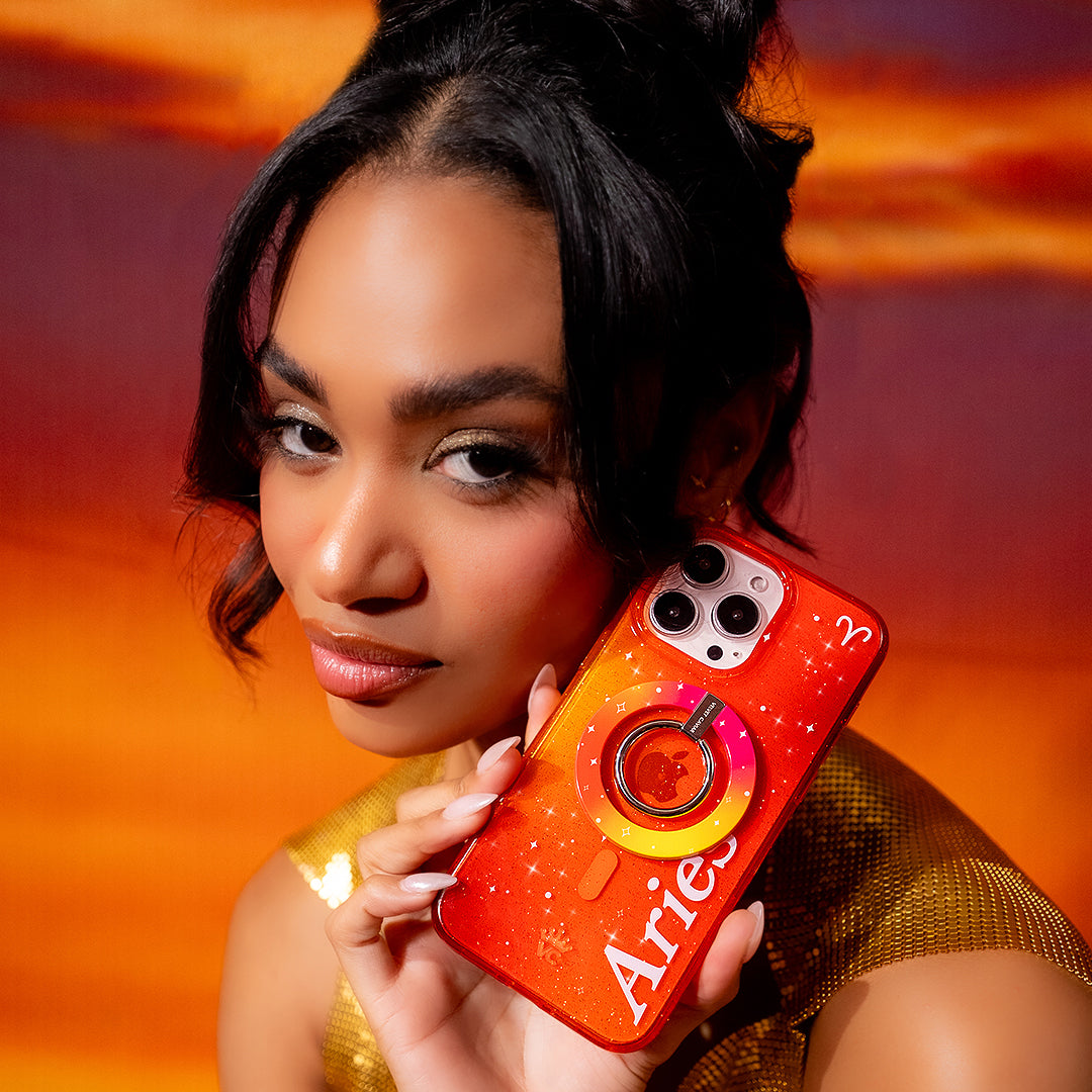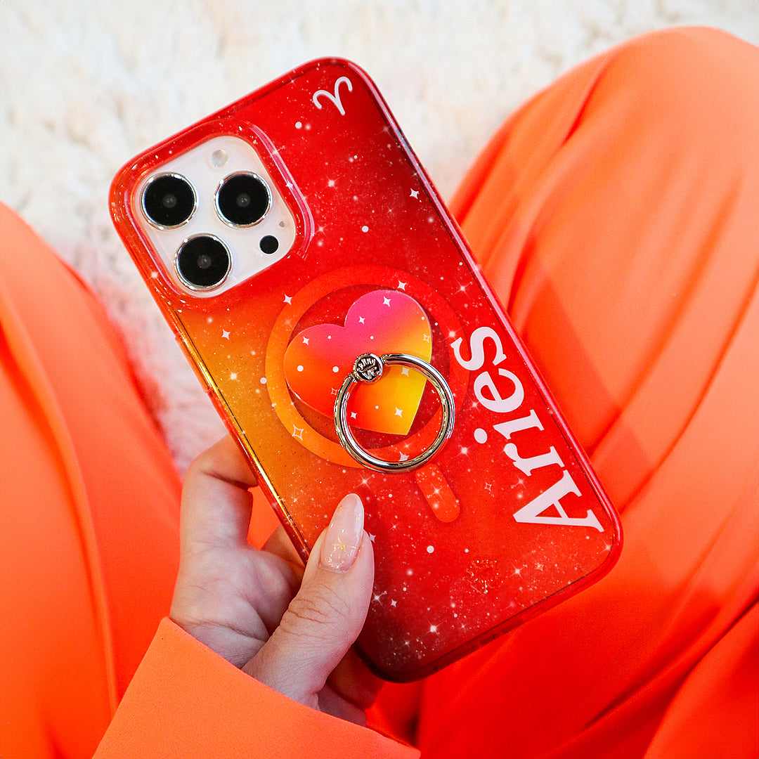 Aries are Loving, Independent, and Strong! This MagSafe case comes in a fiery colorway inspired by the unique elements of Aries with silver glitter sprinkled into the base and bumper. This case is part of our Zodiac Collection in collaboration with Sanctuary™