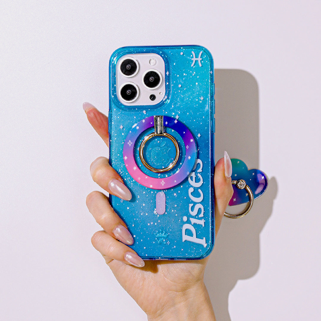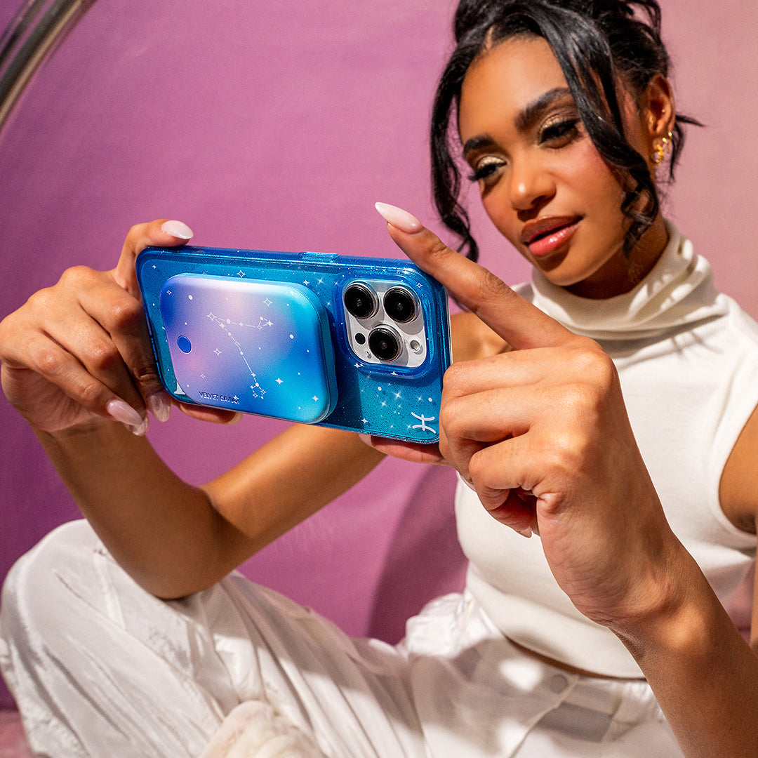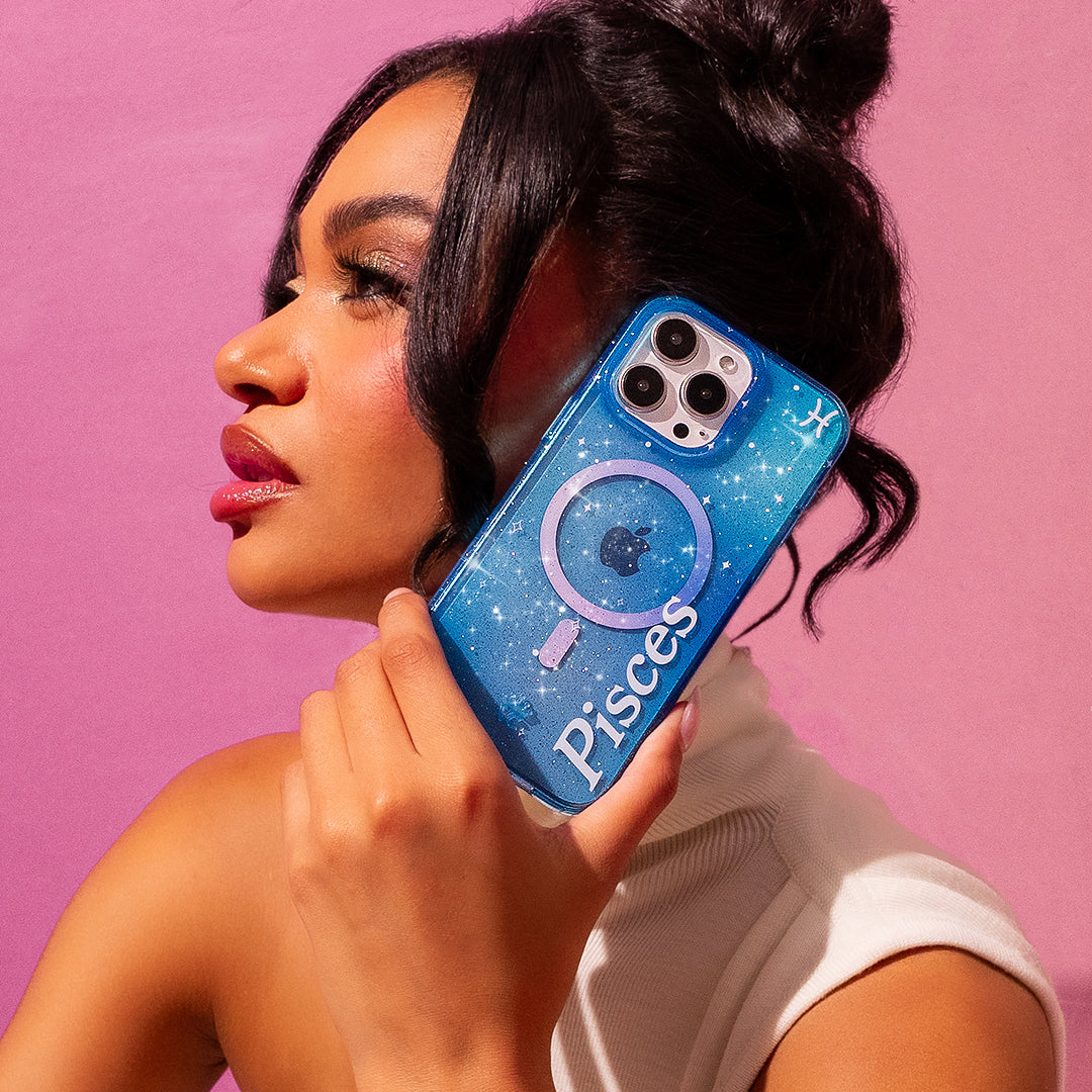 Pisces are Creative, Thoughtful, and Friendly! This MagSafe case comes in an ocean blue colorway inspired by the unique elements of Pisces with silver glitter sprinkled into the base and bumper. This case is part of our Zodiac Collection in collaboration with Sanctuary™