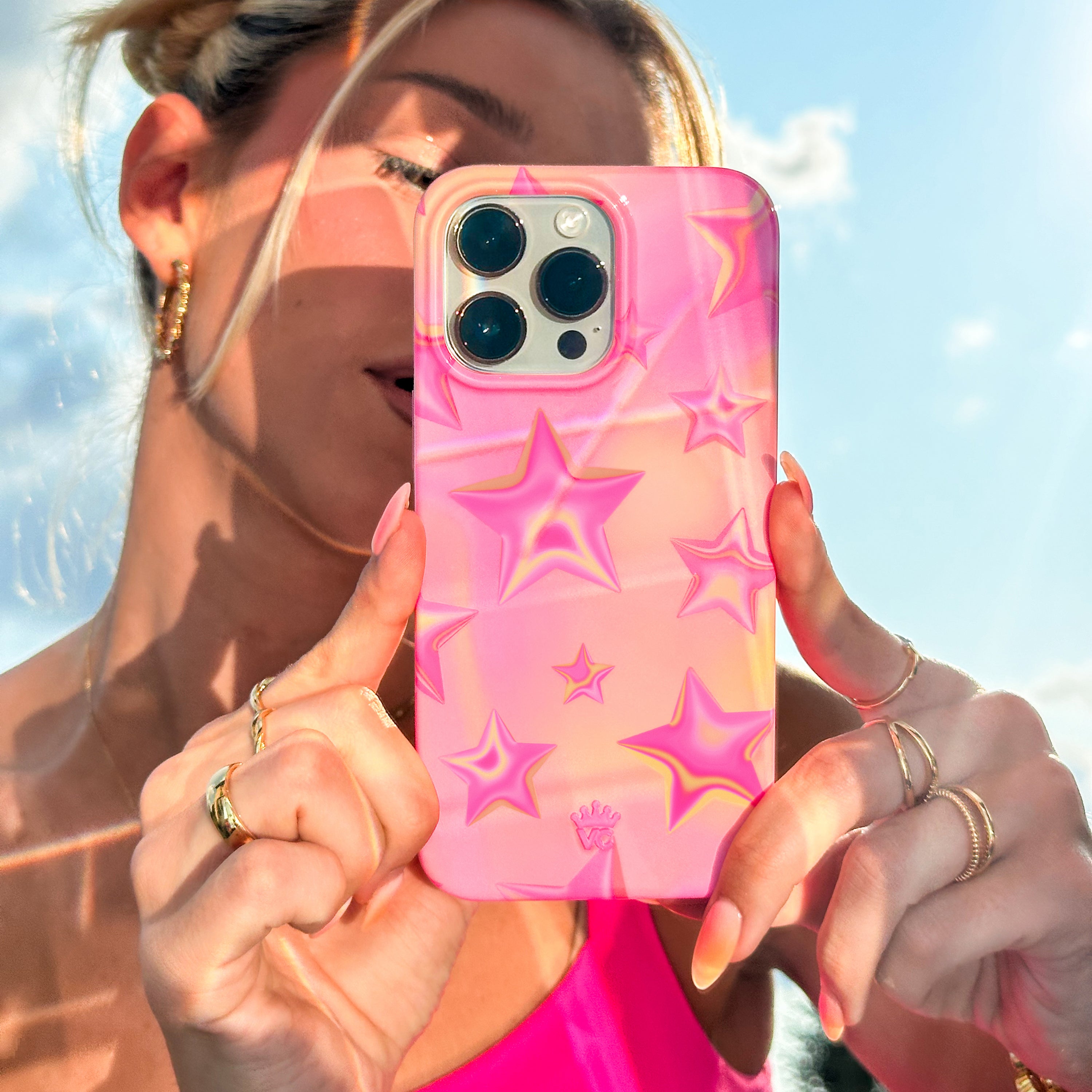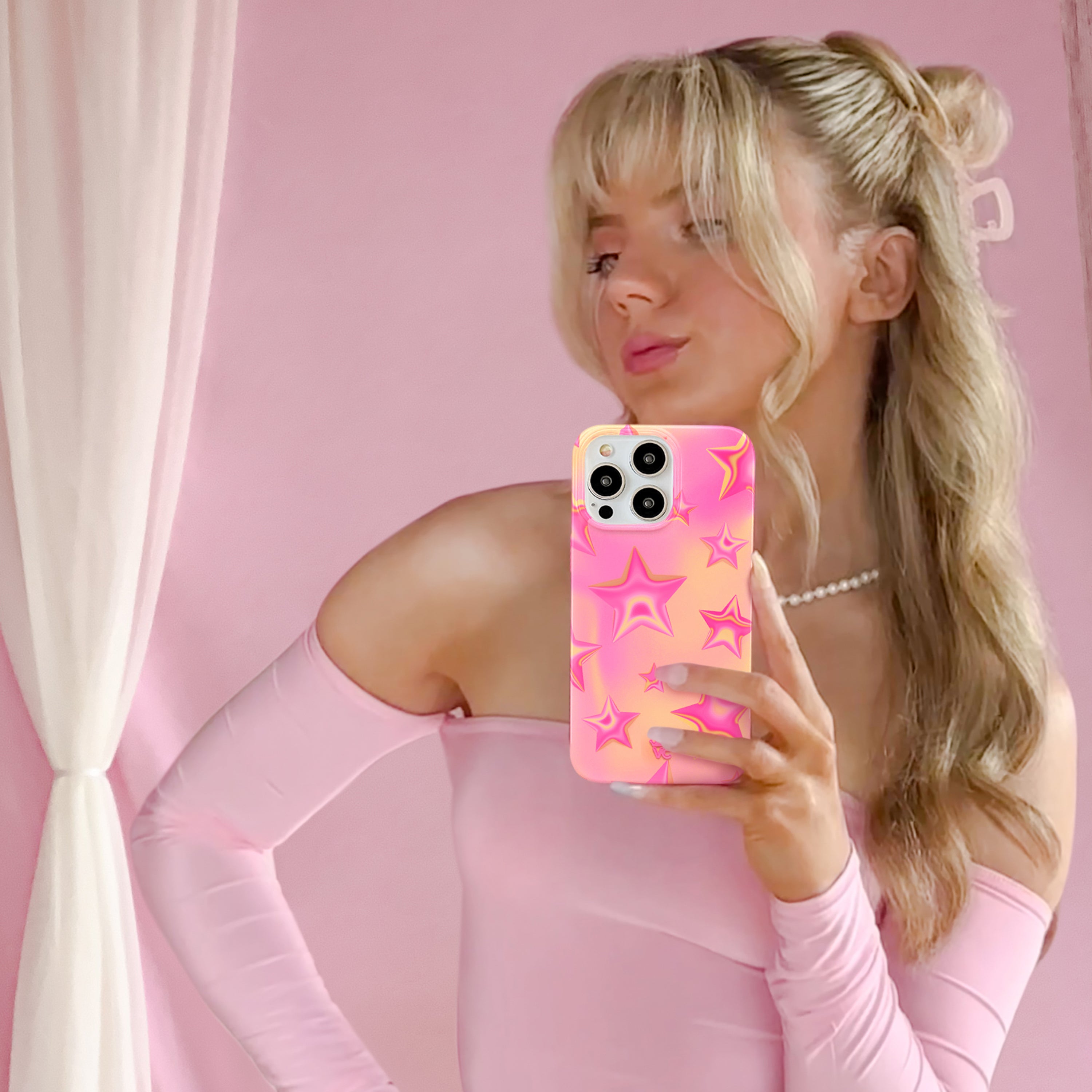 Shine bright! This MagSafe case features an array of sherbet stars on a blended bubblegum pink and yellow base with a contrasting hot pink bumper.