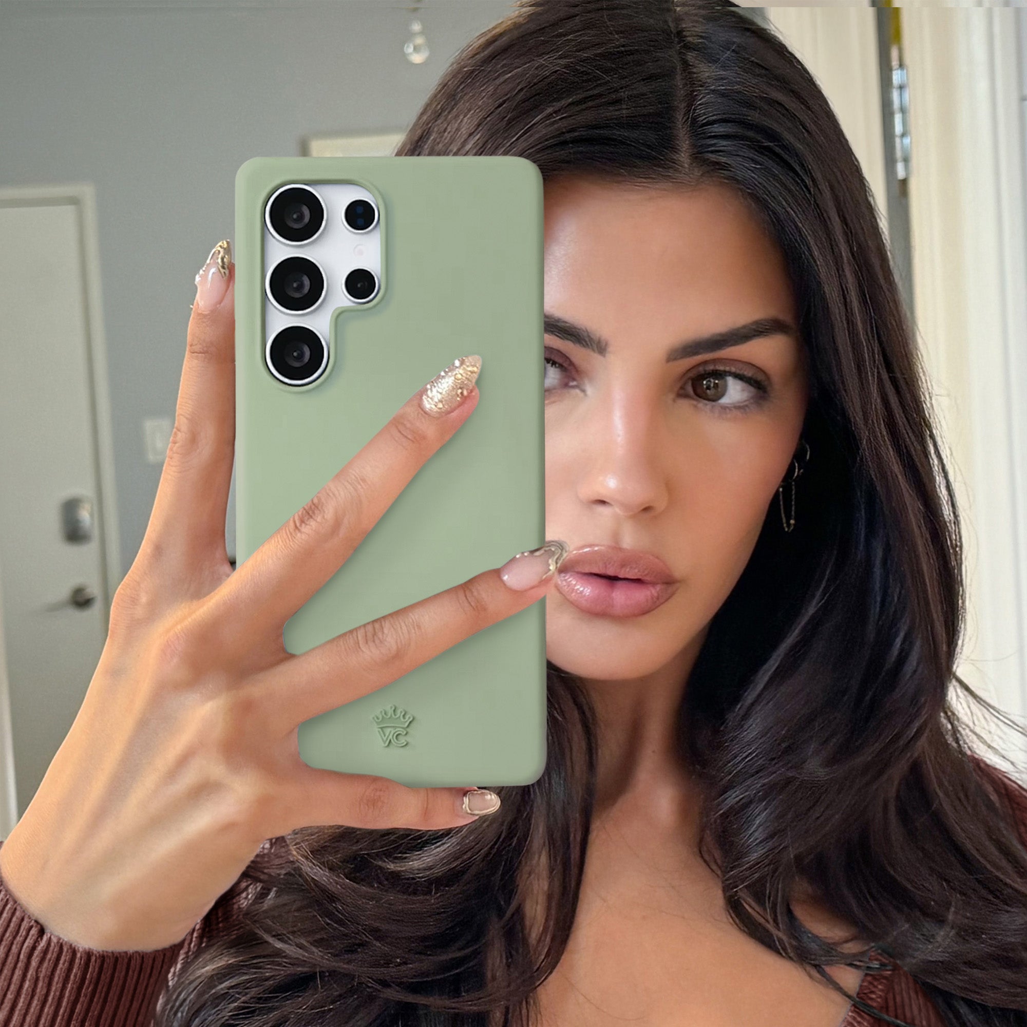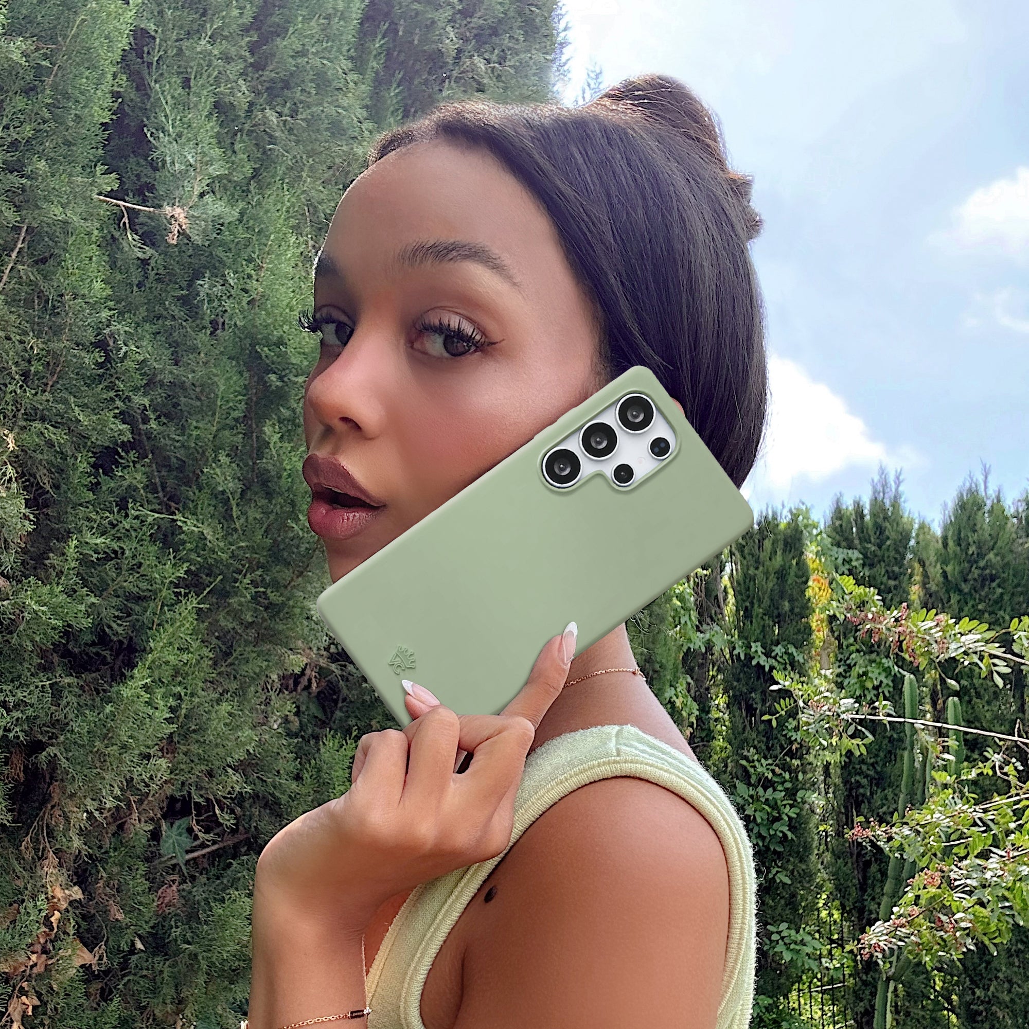 Positive energy only! Thisprotective smoky sage case features a new SatinShield™️ finish for a smooth in-hand feel and added dust protection.