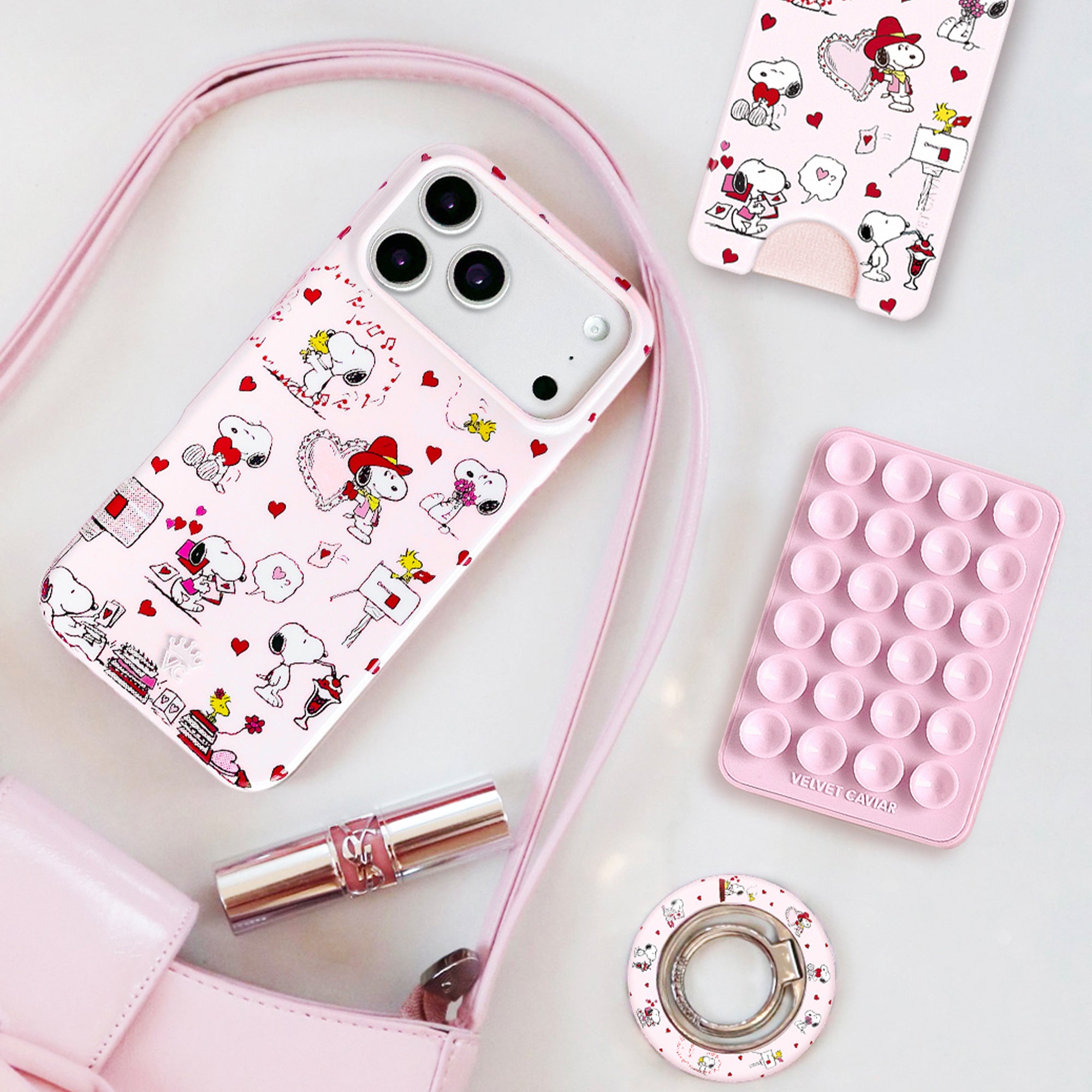 VC loves Snoopy! This glossy MagSafe case features Snoopy in a variety of loving moods on a baby pink base. In collaboration with Peanuts™