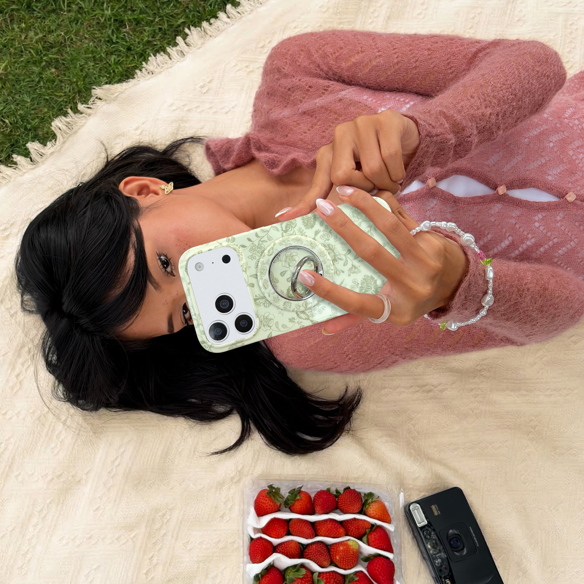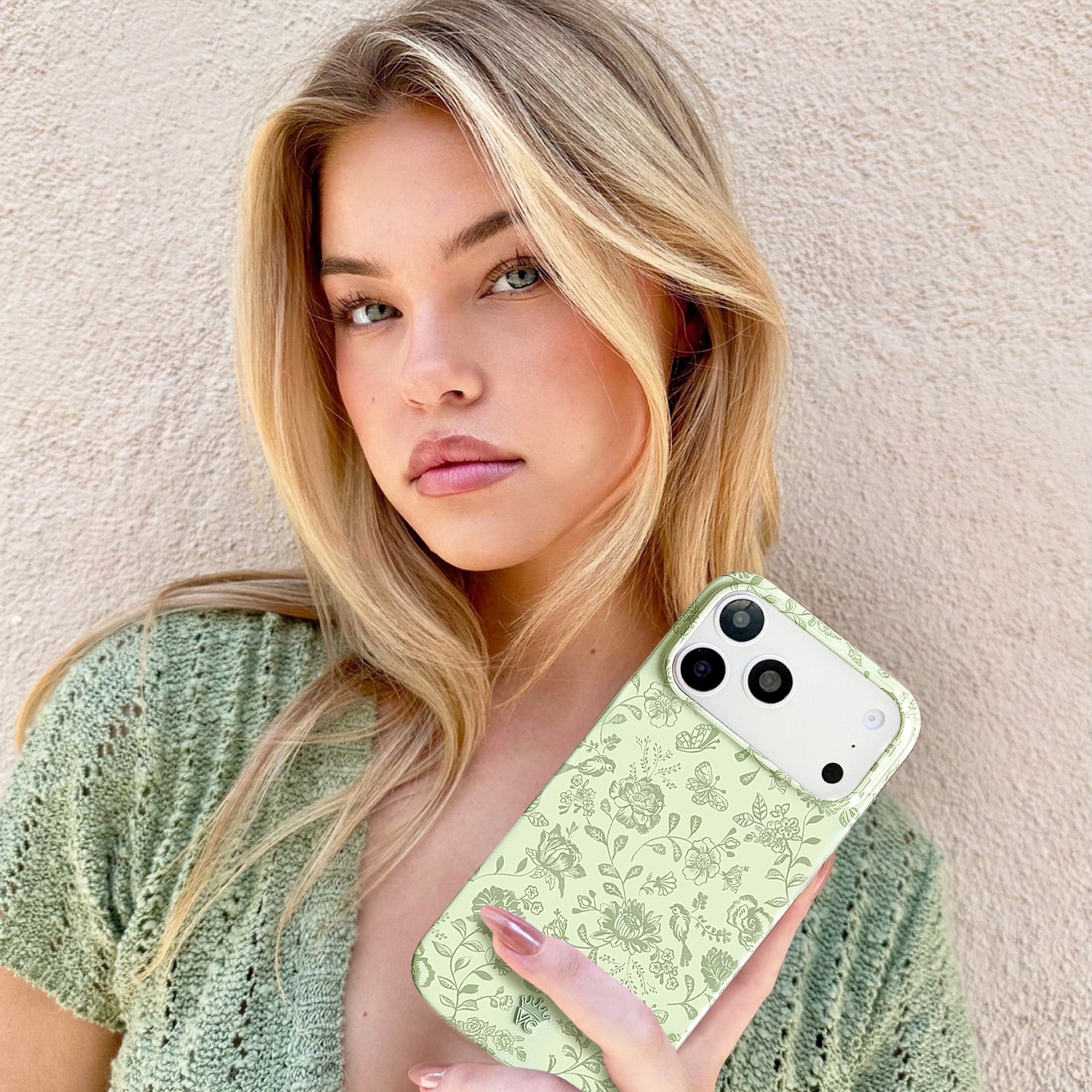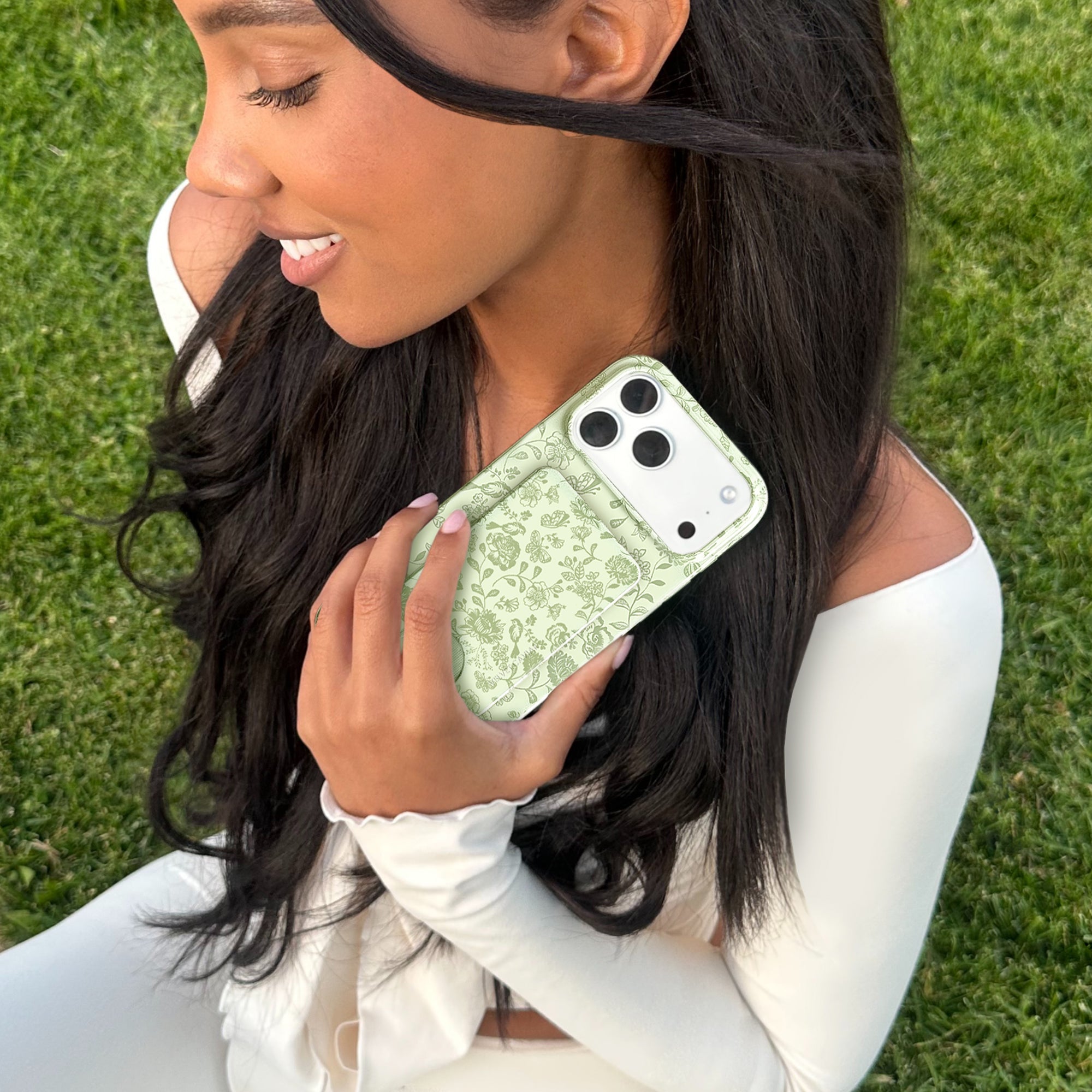 Straight out of a storybook! This glossy MagSafe phone case features a stunning sage botanical floral on a pale green base.