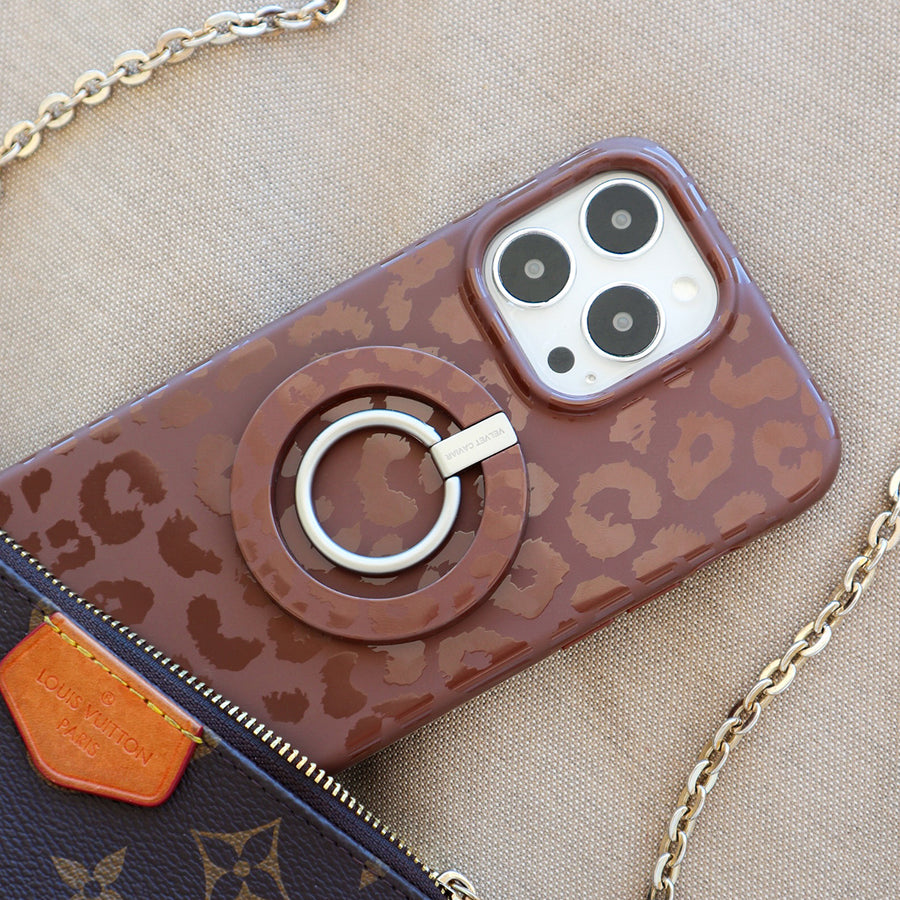 Decadent and rich! Our iconic leopard case is back in the perfect matte chocolate brown with monochromatic glossy leopard spots.