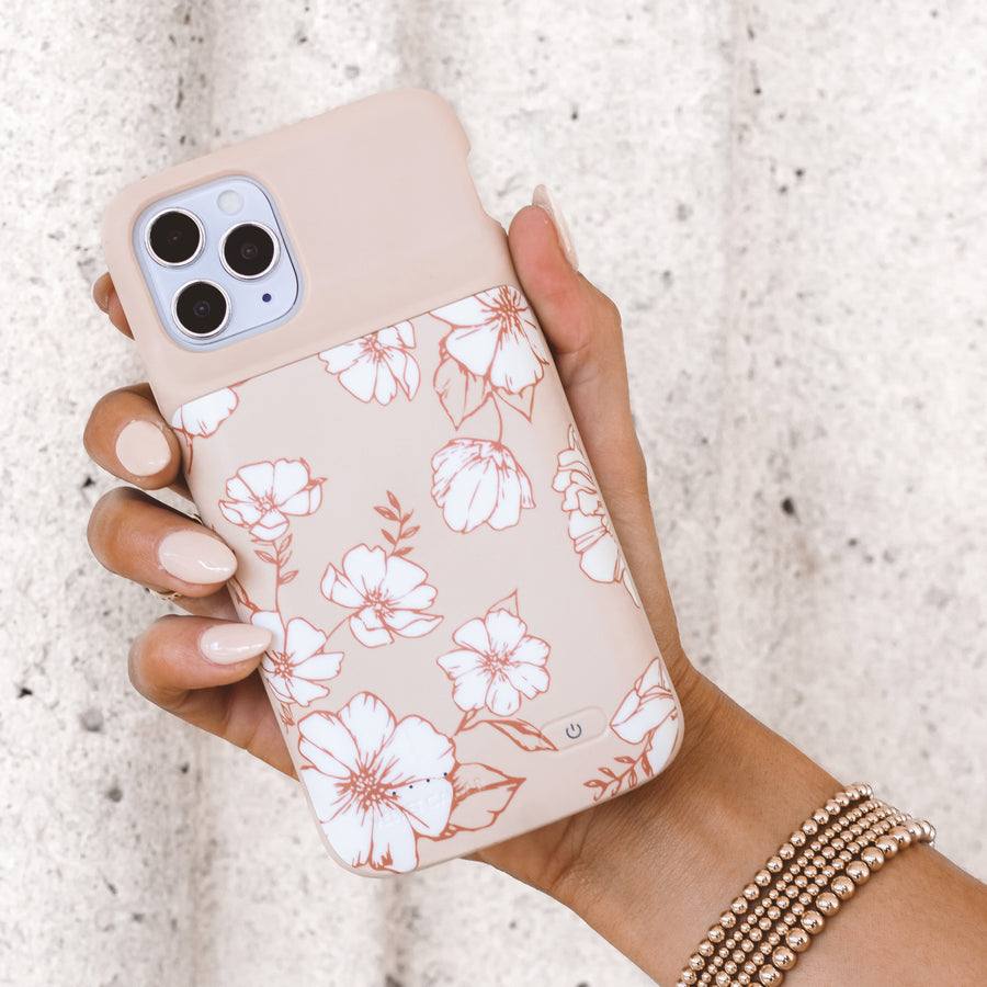 White Floral iPhone Charging Case