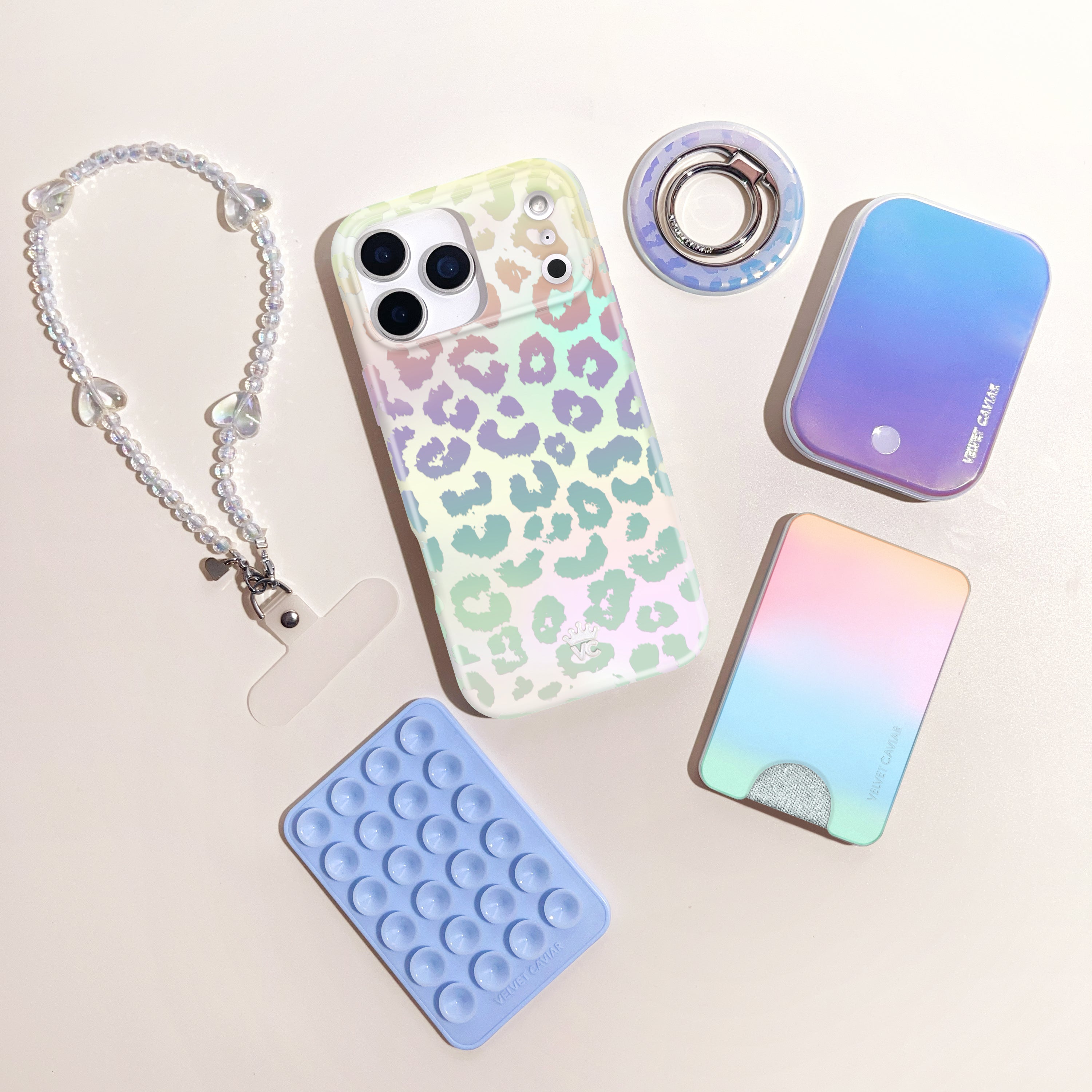 This Collector's Edition MagSafe phone case features glossy leopard spots on an iridescent opal base.